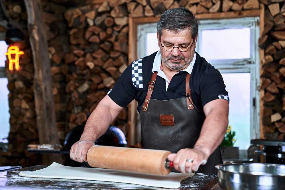 Günter Müller blickt auf fast 50 Jahre im Brothandwerk zurück und hat sich als Feuerbäcker einen Namen gemacht. Er verbindet traditionelles Brothandwerk mit der Technik des Monolith-Grills wie kein anderer. Seine Leidenschaft, sein