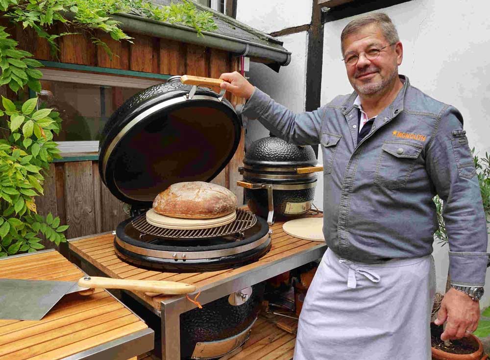 Der Monolith ist für Günter mehr als ein Keramikgrill – er ist der perfekte Partner für das Brothandwerk. „Zu Hause im Backofen habe ich noch nie gebacken. Das ist zu viel Technik für mich. In der Bäckerei sind natürlich auch Backöfen mit Technik, aber die habe ich besser verstanden. Als ich mit den Grillkursen angefangen habe, habe ich mir überlegt, etwas Neues zu machen - und das war das Backen auf dem Grill.“
